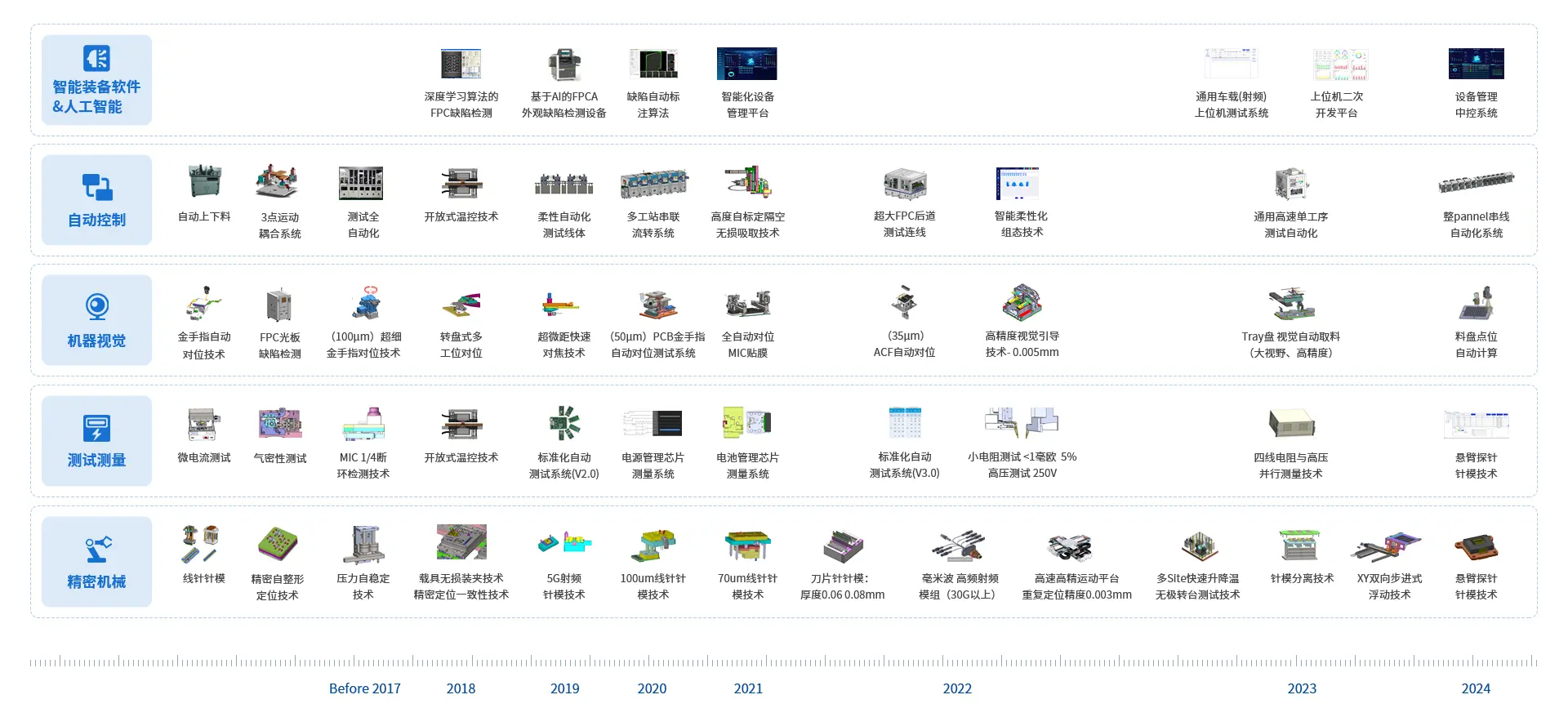 公司深耕FPC测试行业十余载,针对消费类电子行业的应用技术提供专业、可靠、稳定的FPC自动化测试系统解决方案。